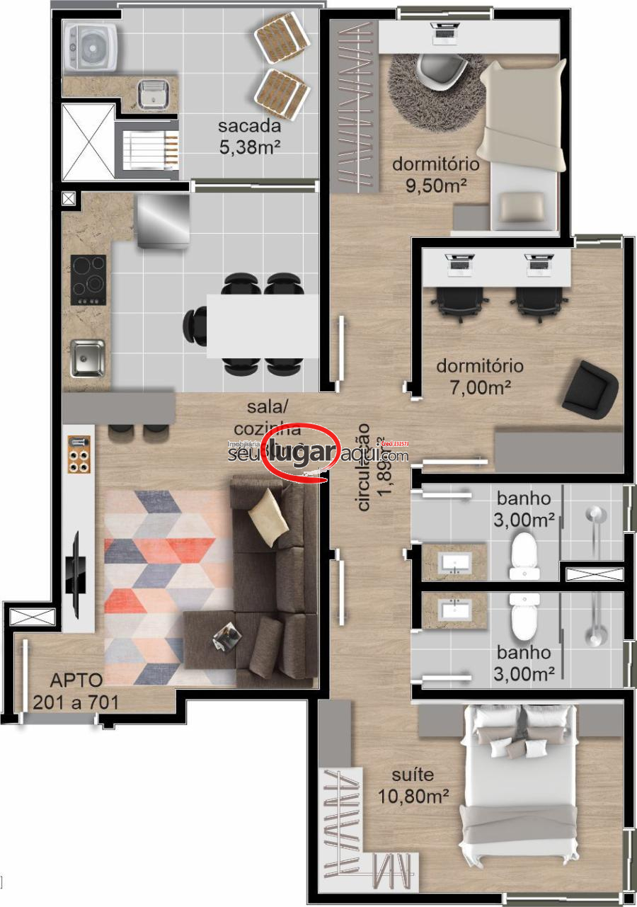 03 Dormitórios ( 01 Suíte )