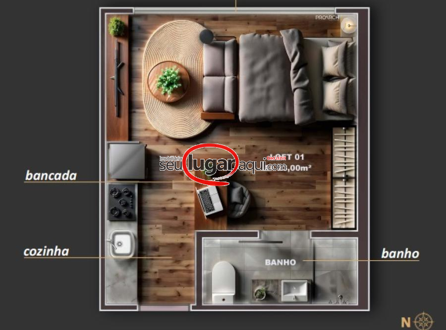SEU LUGAR AQUI Vende excelente apartamento studio em construção no bairro Centro, com as seguintes descrições :